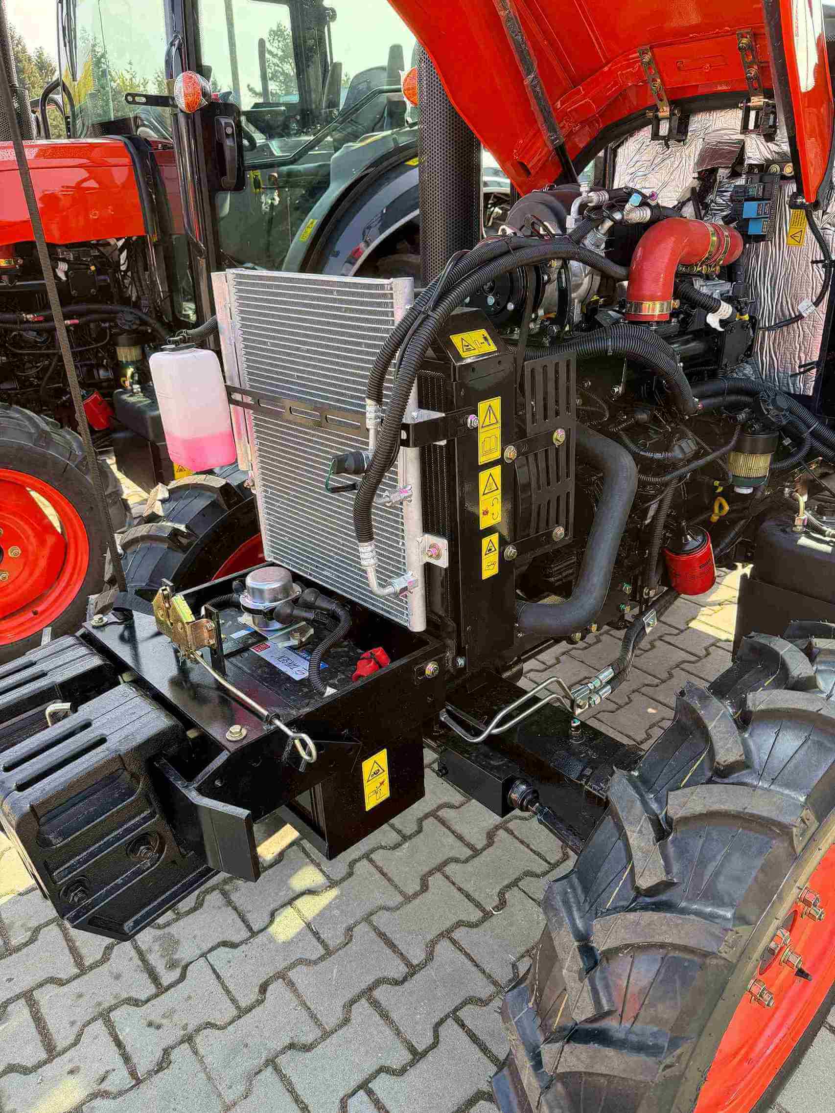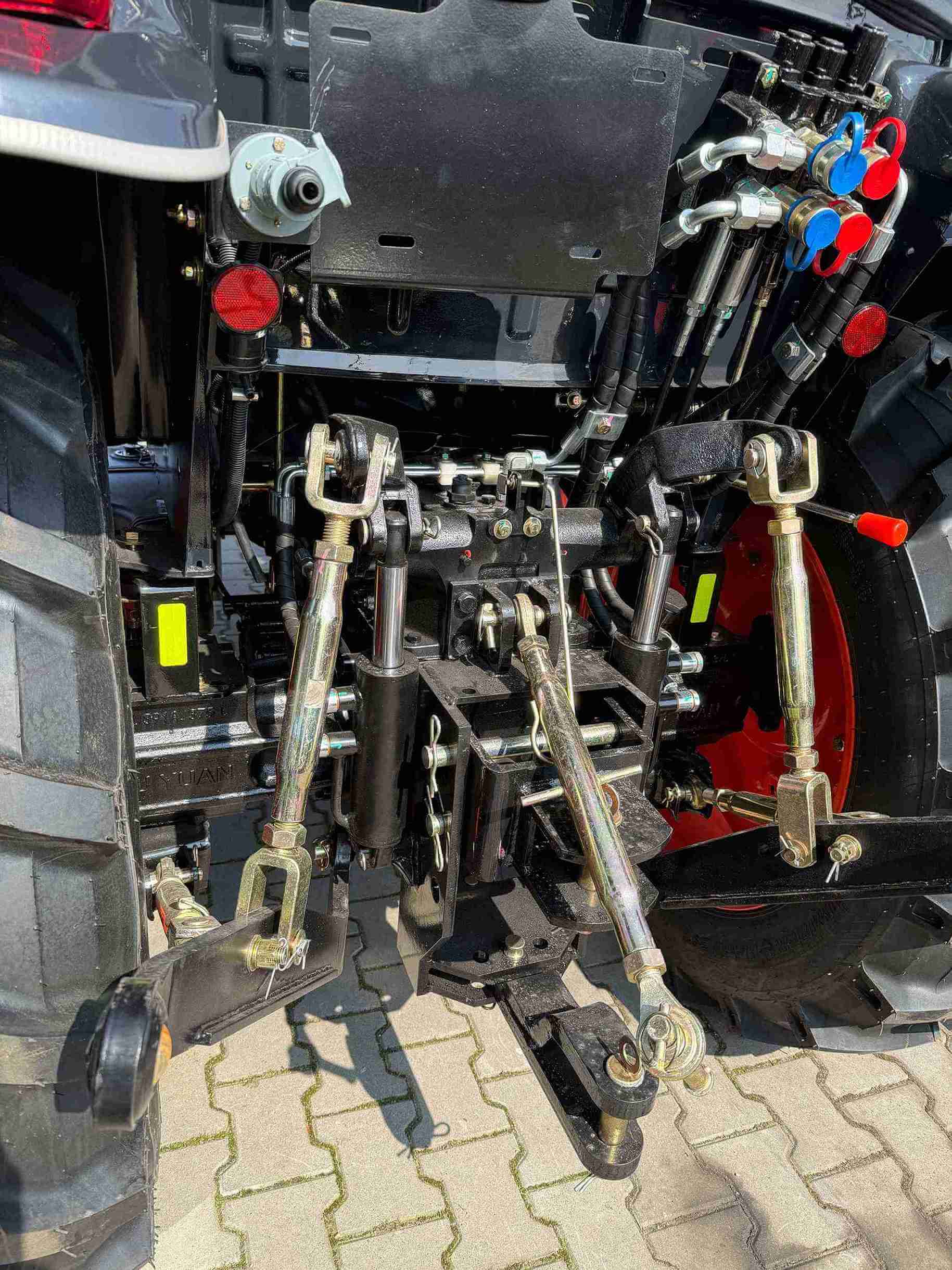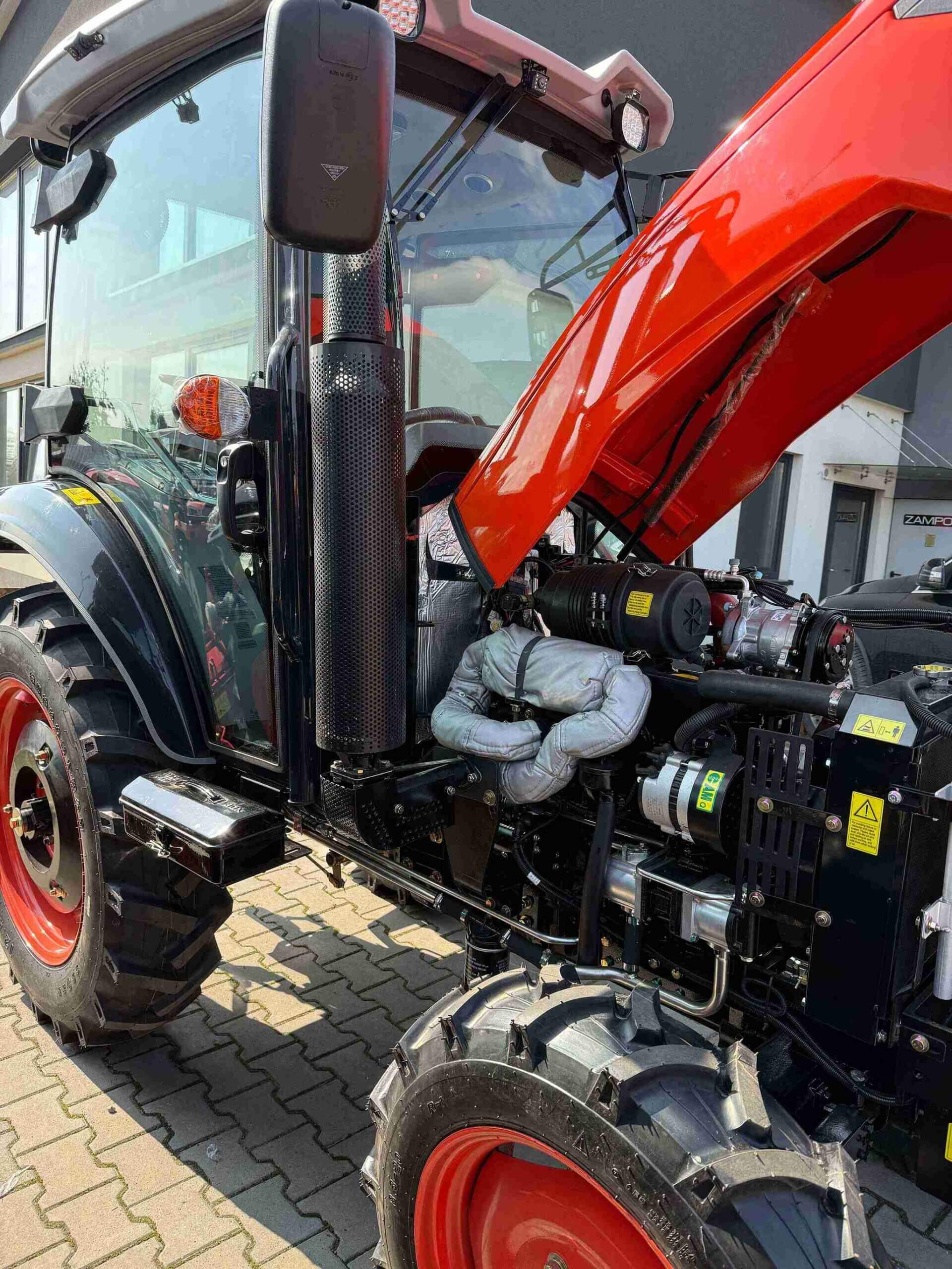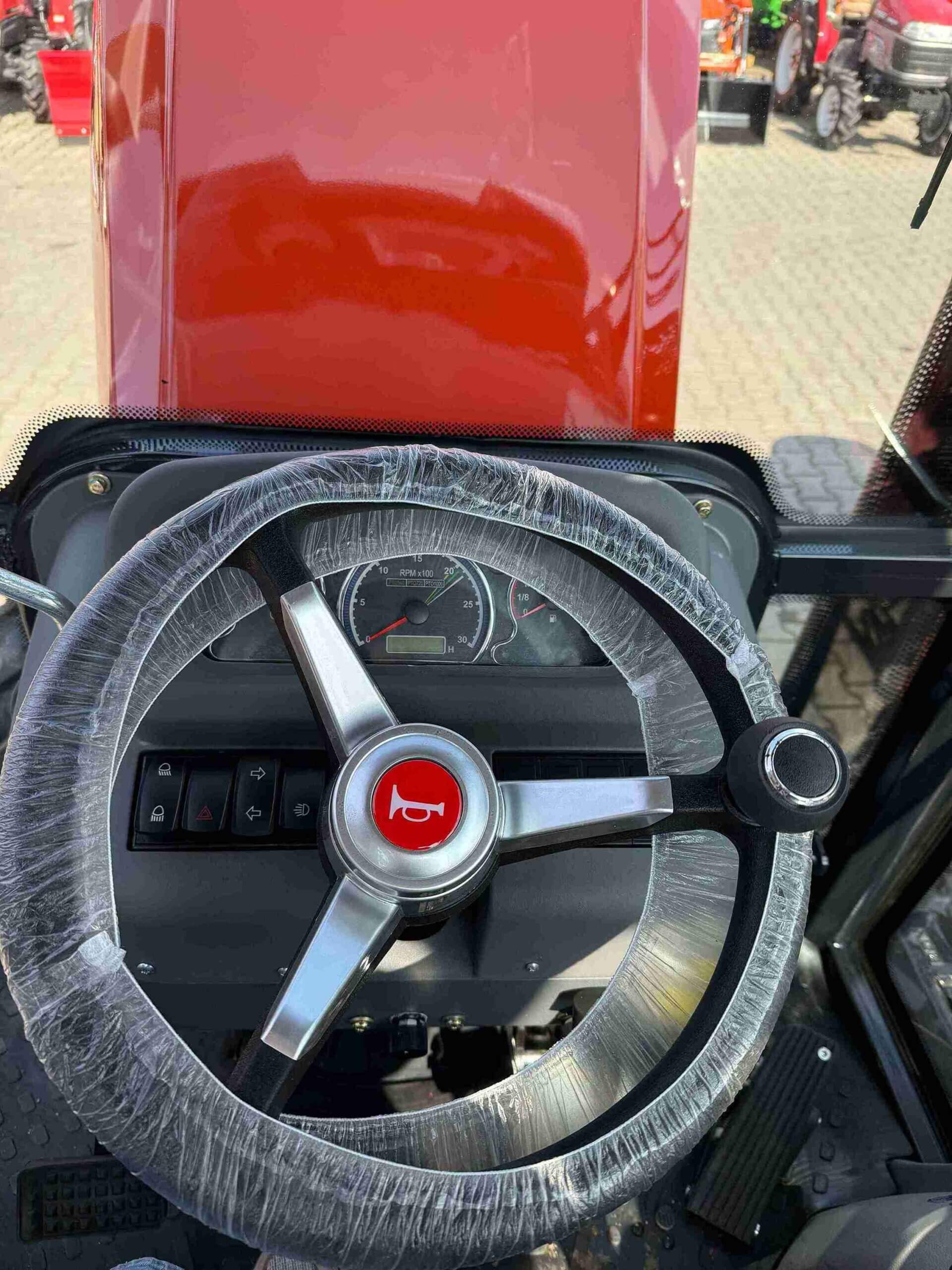 Traktor posiada wspomaganie kierownicy, co znacząco ułatwia manewrowanie i zmniejsza zmęczenie podczas długotrwałego użytkowania. Sercem maszyny jest wydajny, 4-cylindrowy silnik wysokoprężny (diesel), chłodzony cieczą, który zapewnia optymalną moc oraz trwałość. Manualna skrzynia biegów z rewersem umożliwia płynną zmianę kierunku jazdy, co jest szczególnie przydatne podczas prac wymagających częstego manewrowania, takich jak załadunek czy prace w gospodarstwie. Traktor posiada dokumenty COC do rejestracji.